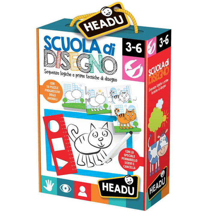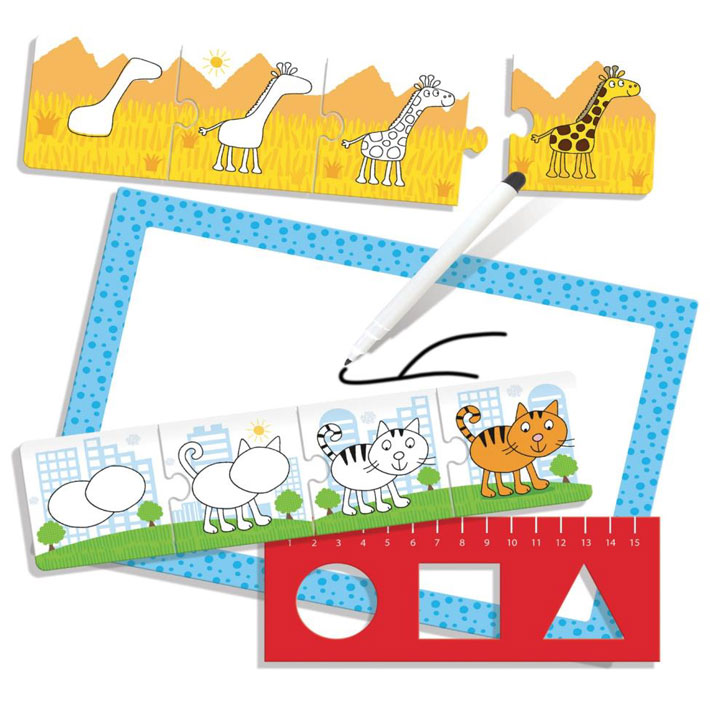 Un Kit originale per insegnare al bambino a disegnare gli animali passo dopo passo. Inclusi nel gioco la speciale lavagnetta e il pennarello scrivi e cancella per sviluppare le proprie abilità creative.