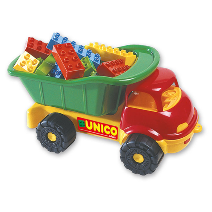 34 mattoncini e un camion di plastica adatto per la spiaggia.